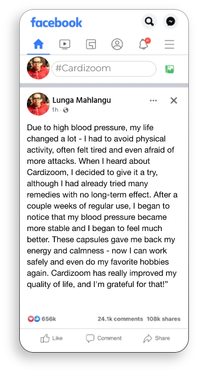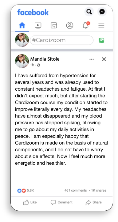 “Hypertension is a dangerous condition that affects the health of millions of people. Cardizoom with its clever composition is a natural solution to strengthen blood vessels and reduce inflammation. It contains ingredients such as garlic and B vitamins that not only lower blood pressure, but also improve overall cardiovascular health. Cardizoom is a safe way to help your heart work properly.”